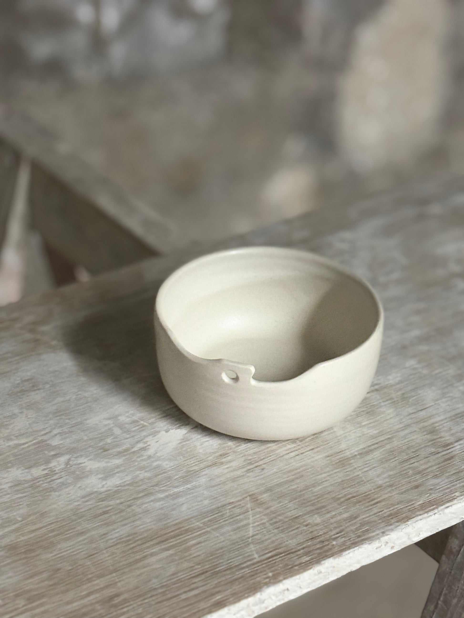 Chaque pièce est tournée et émaillée à la main dans mon atelier à Vallauris. De légères variations de forme, de teinte ou de texture peuvent apparaître d’une pièce à l’autre, rendant chacune unique et témoignant du savoir-faire artisanal.
